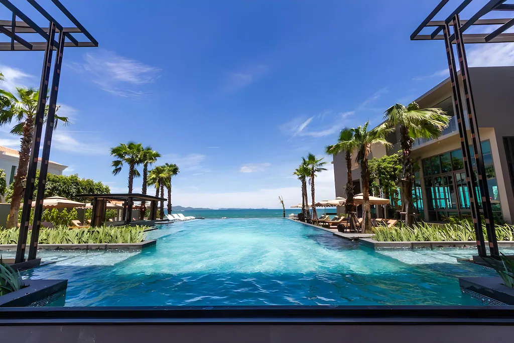 โรงแรมสุดหรูในซอยนาเกลือ 20 ที่ขึ้นชื่อเรื่องสระว่ายน้ำแบบ Infinite Edge Pool ที่ถ่ายรูปสวยมาก ห้องพักส่วนใหญ่เห็นวิวทะเลแบบพาโนรามา เหมาะสำหรับคู่รักที่มองหาความโรแมนติกและเงียบสงบ